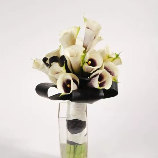 Букет невесты является важным свадебным атрибутом. Если вы остановили выбор на каллах, никогда об этом не пожалеете. Эти изящные и нежные цветы радуют обилием цветовой гаммы и не нуждаются в дополнительных декоративных элементах. Можно просто перевязать стебли лентой или кружевом, добавить нить жемчуга или несколько веточек декоративных растений. Очень элегантно смотрится композиция из черных и белых калл.