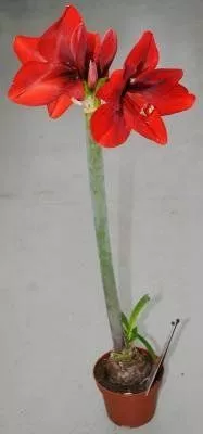 Луковица Амарилиса крупная, грушевидной формы. Листья ремневидные, до 50 см в длину, желобчатые, гладкие, появляются после цветков или одновременно с ними. Цветонос до 50-70 см высотой. Цветки крупные, поникающие, розово-красные, колокольчато-воронковидные, ароматные. Амарилис отличается от широко распространенного гипеаструма, часто неправильно называемого амарилисом тем, что регулярно образует дочерние луковицы. Цветет один раз в году, обычно осенью.