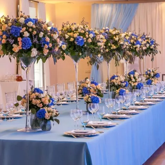 Существует множество вариантов оформления торжественного зала живыми цветами. И каждый из них по своему красивый и эффектный.