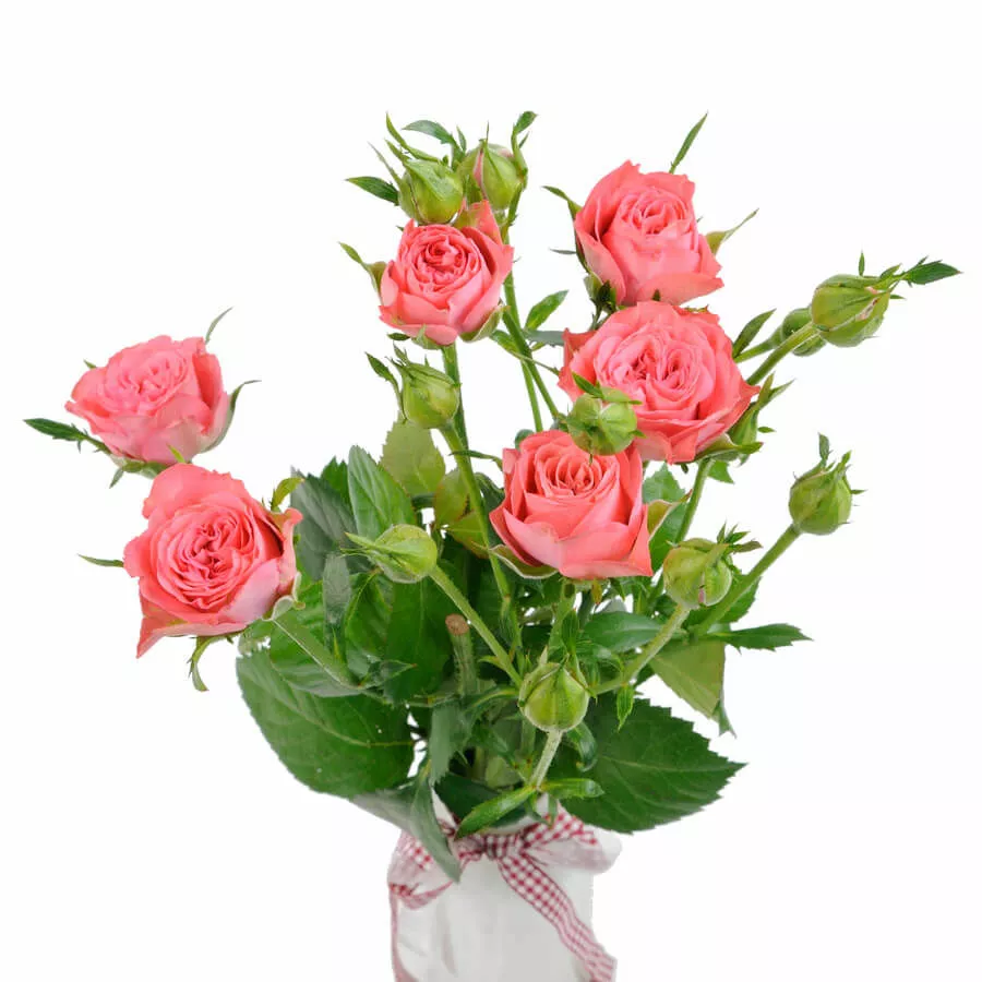 Коралловый сорт розы спрей